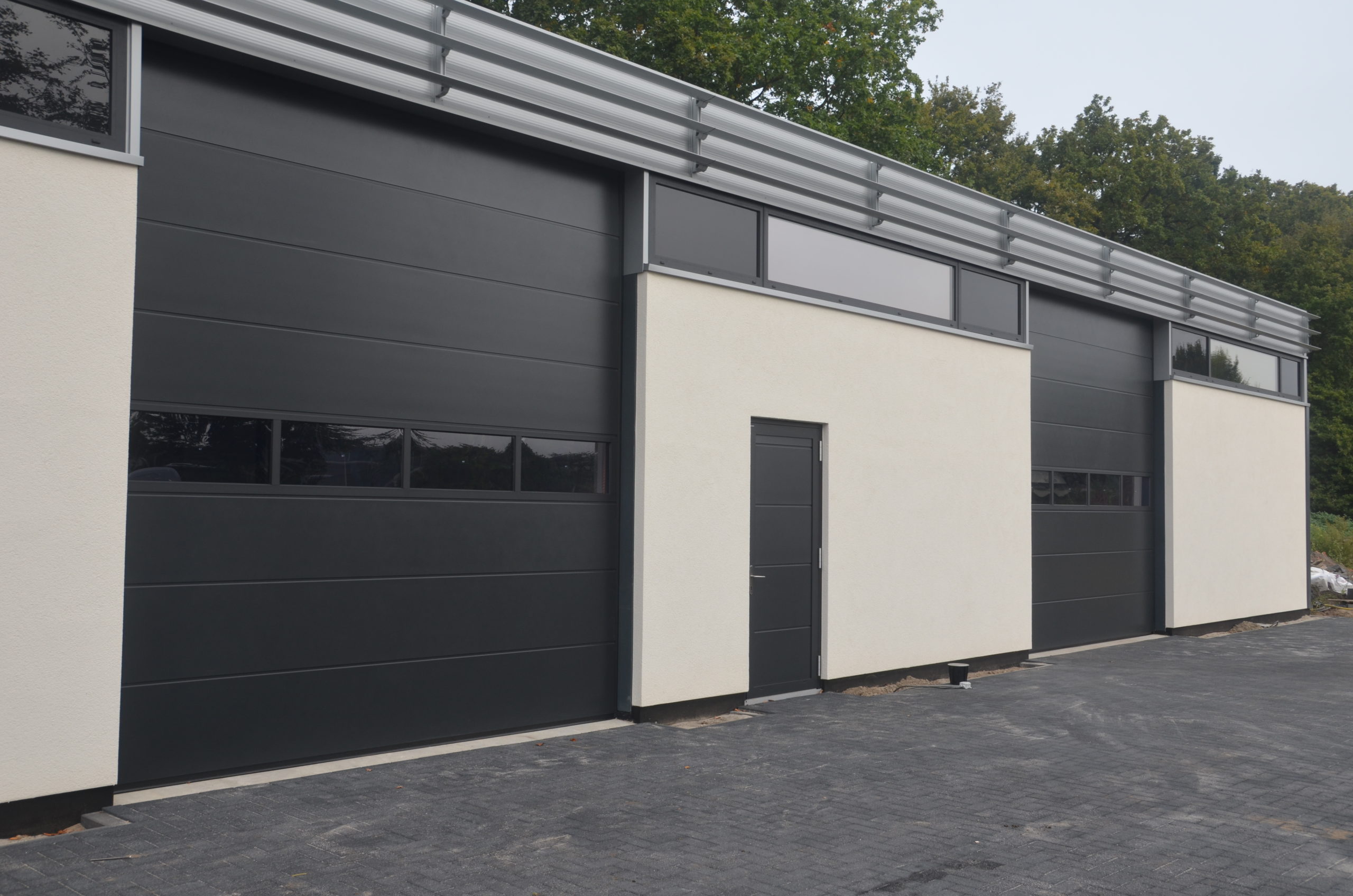 AW Nederland | AW MakroPro bedrijfsdeuren, Vlak, Glad, RAL structuur gespoten met getinte ruiten in glassectie en aluminium loopdeur Door admin30 augustus 2016Laat een reactie achter